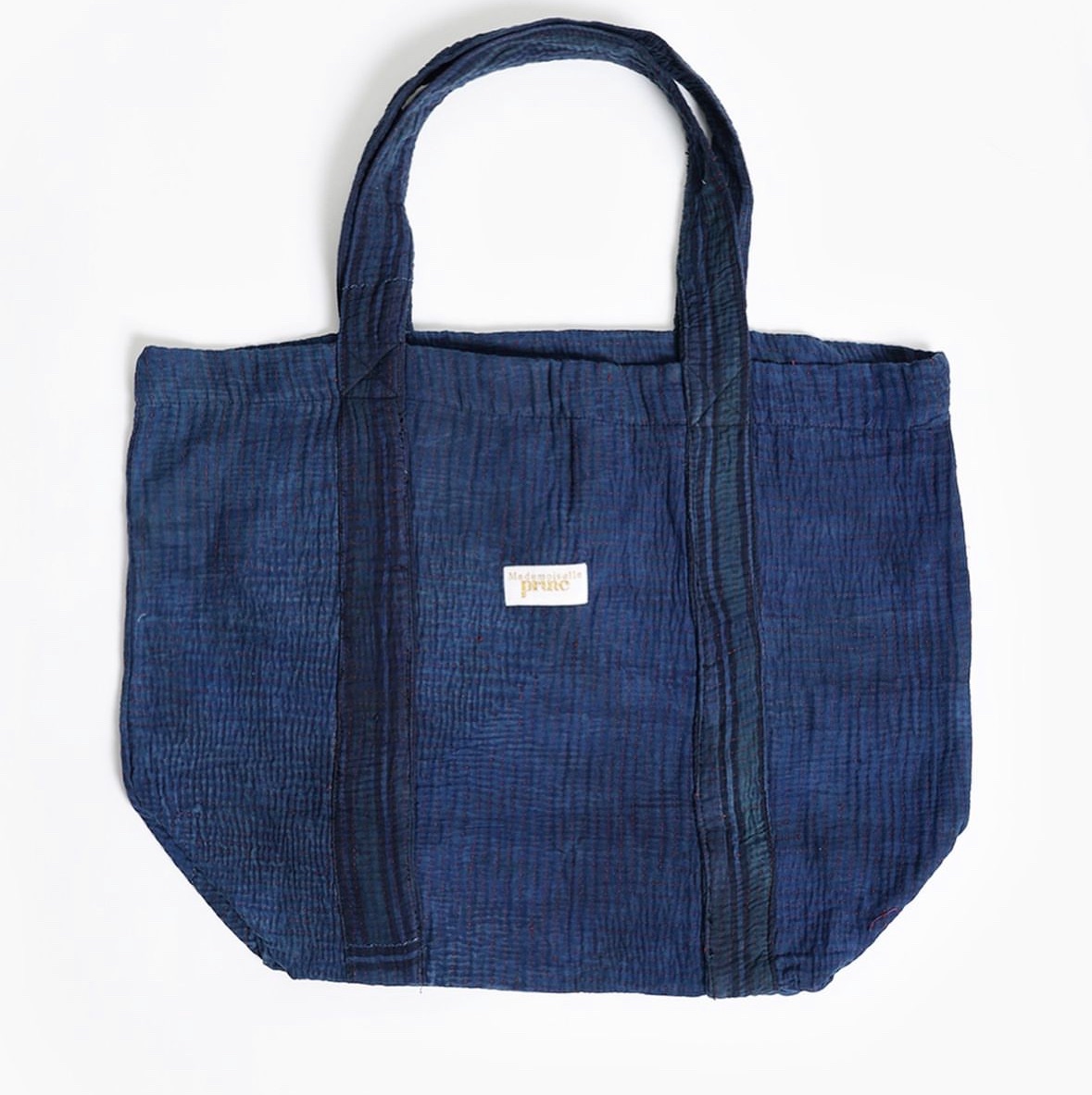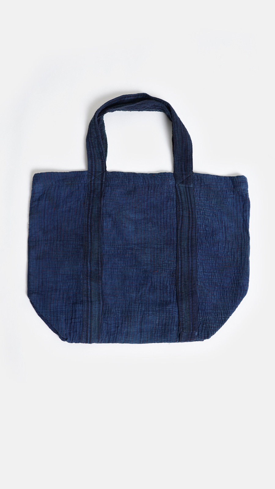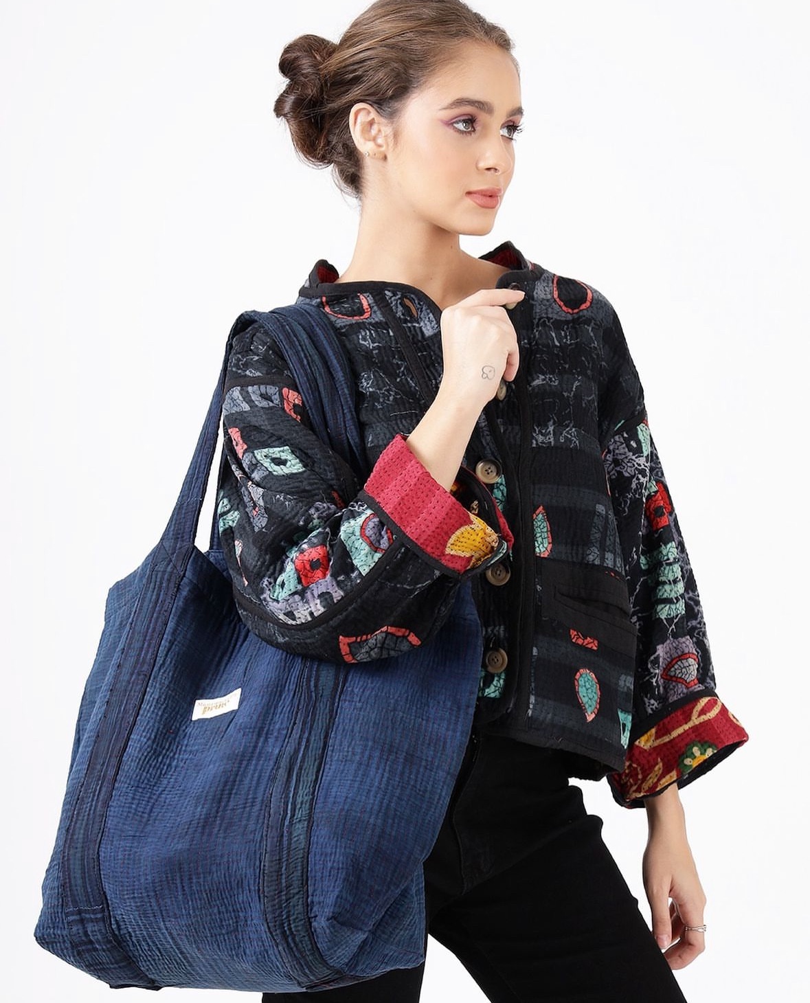 Made from heritage kantha textile, each bag is one-of-a-kind. Each piece is unique and has been designed using the kantha embroidery technique, creatively up-cycling old cotton saris, giving them a new life as fashion accessories.